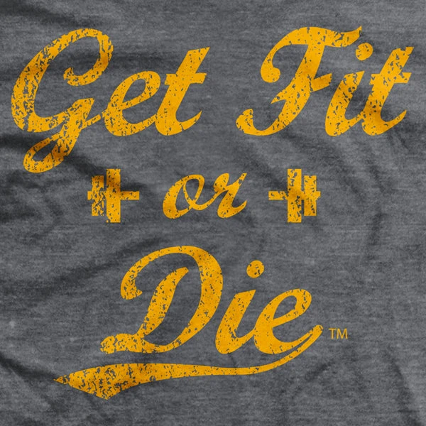 Get Fit or Die. It’s the classic look. Simple. Elegant. Perfect for the gym.