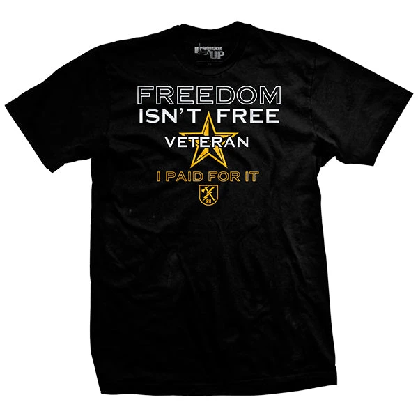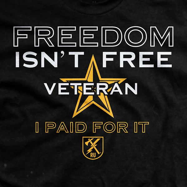 This shirt proudly shows VETERAN over the front left breast of the shirt (we said breast…heh, heh…) with the back stating “Freedom isn’t Free. I paid for it.” This shirt meets two awesome intents. One – We at Ranger Up firmly believe that every sailor, airman, coast guardsman, marine and soldier owns a piece of this country, paid for in his or her blood, sweat, tears, and time away from family and friends. We think this shirt celebrates that. Two – this shirt will aggravate the crap out of the people we hate. “Who do they think they are? Like he really paid for anything. All he did was propagate unbridled American aggression for oil…blah blah blah” We love it when these people are unhappy and this shirt will drive em nuts! Enjoy!